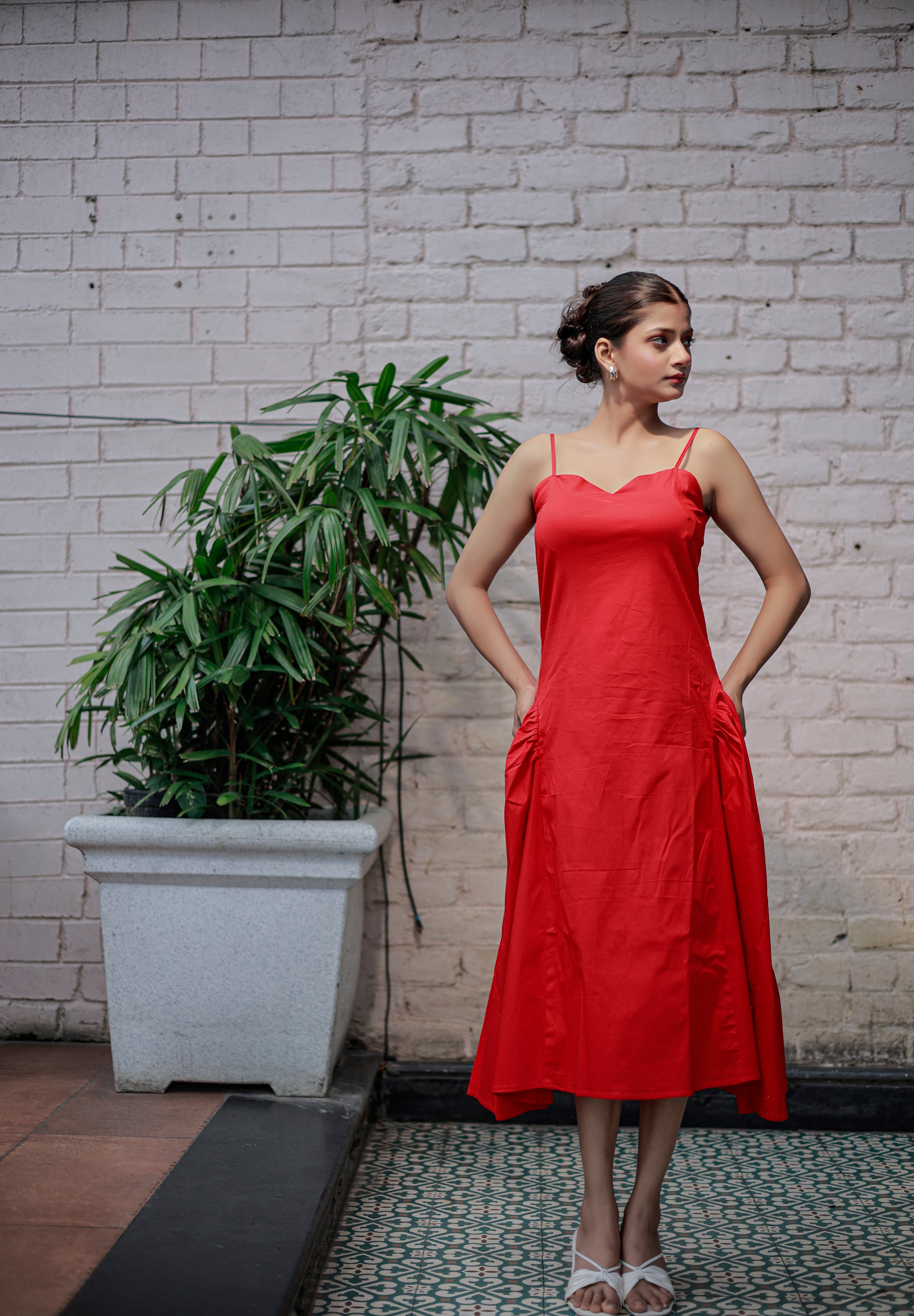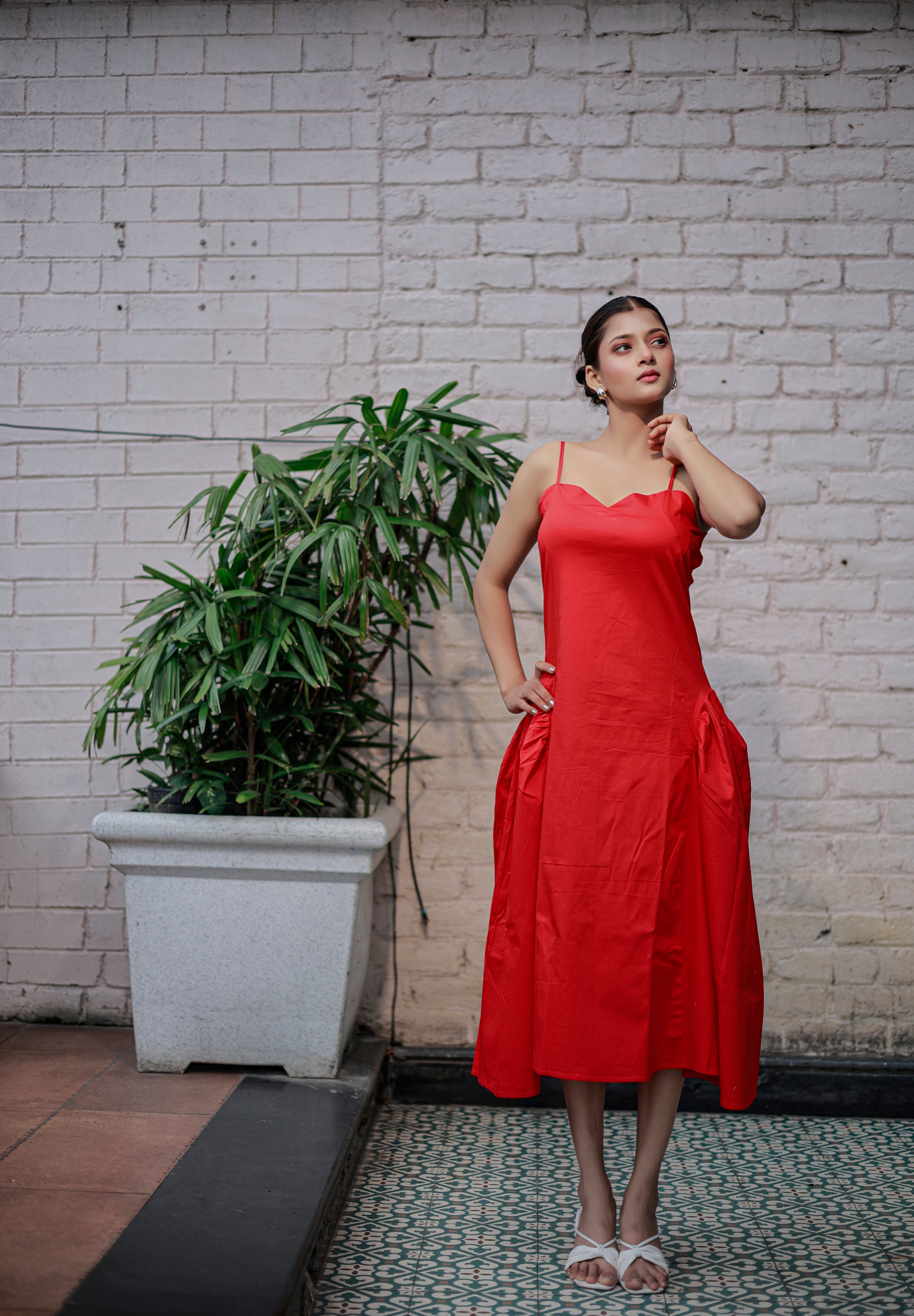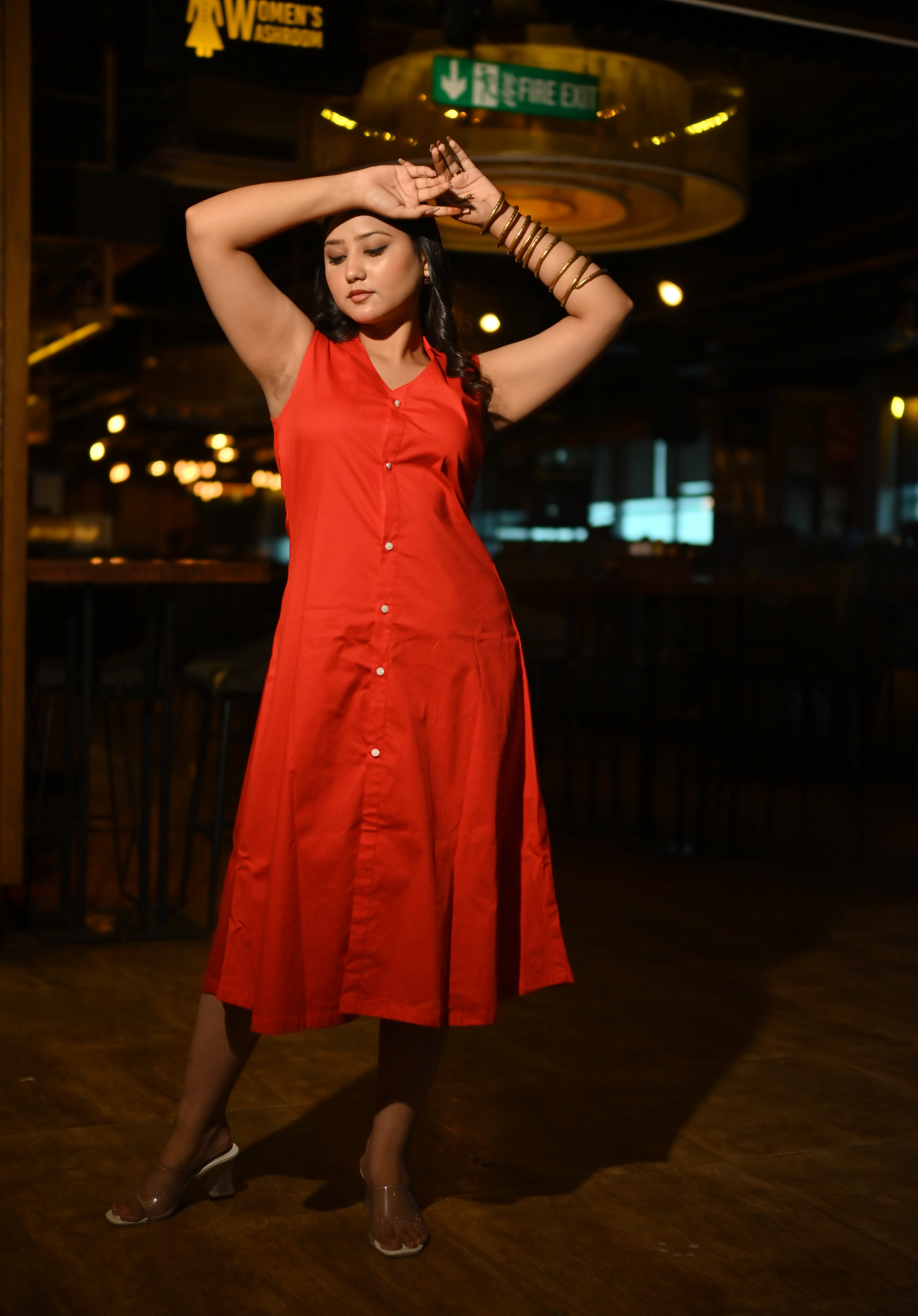Red Button-Down Midi Dress – Chic and Effortless Style