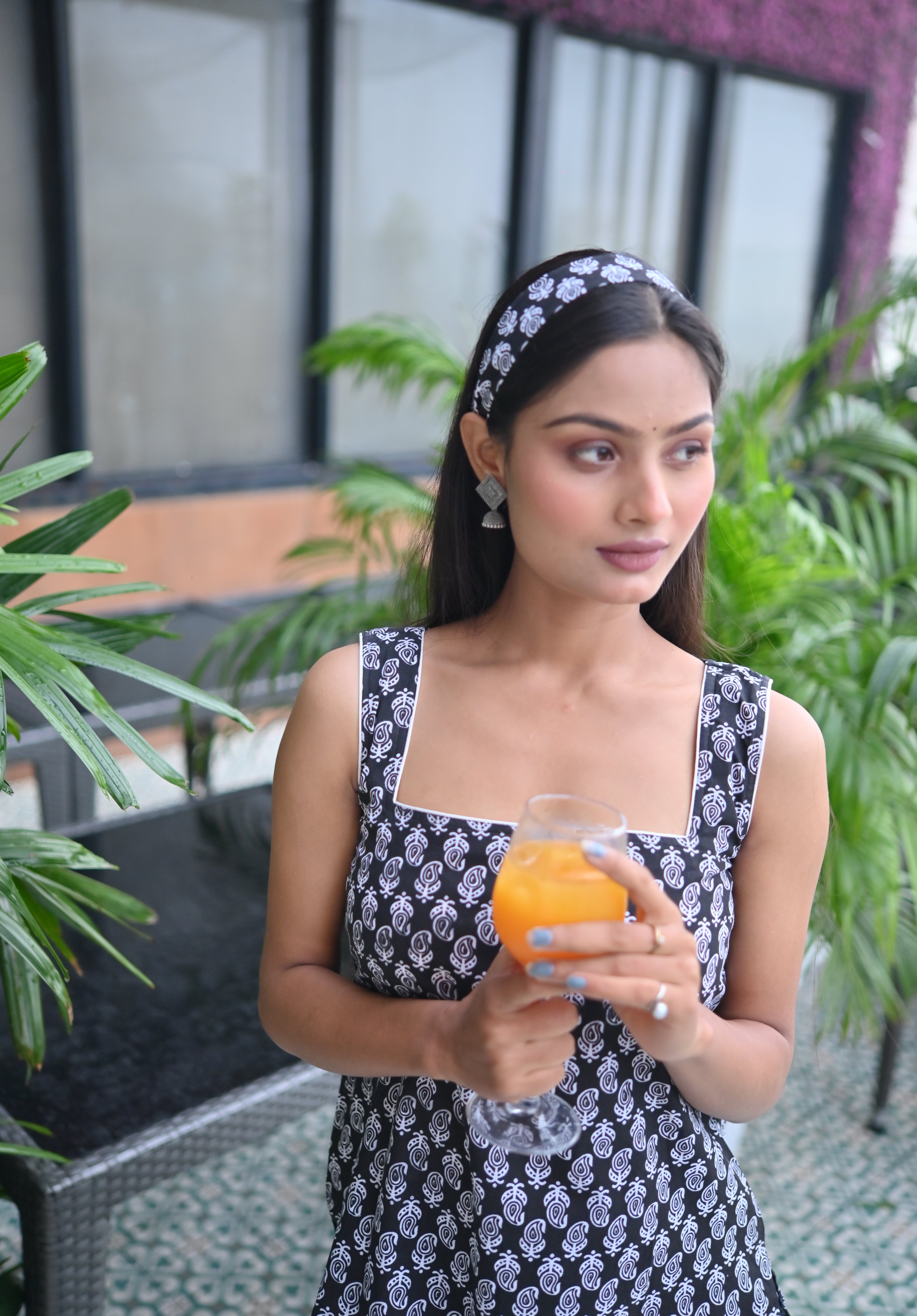 Black & White Sleeveless Printed Square Neck Tunic Top